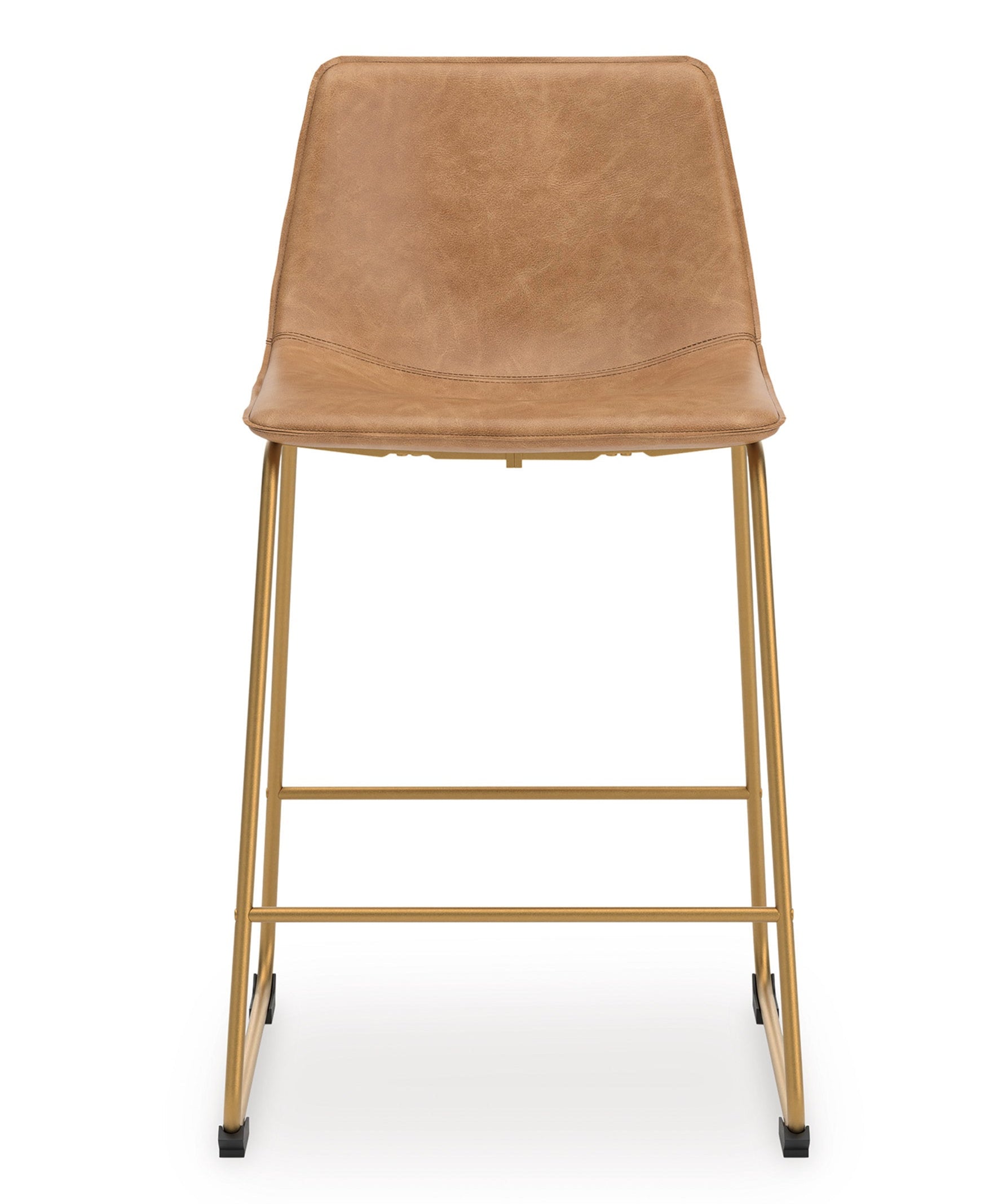 Dine in casual contemporary fashion with this counter height bar stool. A retro-inspired bucket design gives it a mid-century vibe. Sleek faux leather and a luxe gold tone frame bring the look right into the present. And with a contoured seat for your comfort, it dishes out style and convenience all in one.