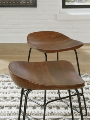 Contoured for comfort. This stunningly simple wood stool works effortlessly with contemporary decor. Its gorgeous, natural-looking seat made of solid mango wood contrasts nicely with the matte black metal frame and integrated footrest, providing an instant upgrade to your kitchen or bar area.