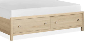Introducing the Merrifield bedroom, an exquisite blend of casual contemporary style and refined functionality. This collection combines thoughtful design with practical features to elevate your living space. The Sandstone Beige finish, complemented by natural fabric and polished nickel hardware, exudes a sophisticated elegance. Perfect for modern, relaxed interiors, it enhances any home with its fresh and inviting aesthetic. Crafted from premium oak paper veneer and hardwood solids, the Merrifield ensures enduring durability and timeless beauty.