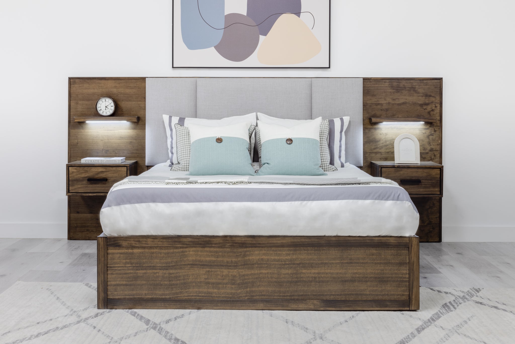 Queen Bed & 2 Nightstands: Width 111.5" x Depth 83.5" x Height 49"