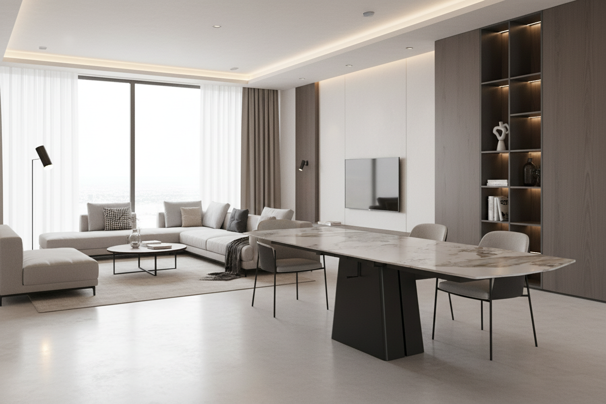 Experience the ultimate in versatility with our modern and stylish Terra dining table. Designed for practicality and built to last, this durable table elevates your dining experience and adds a touch of modern style to your home.