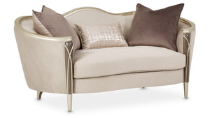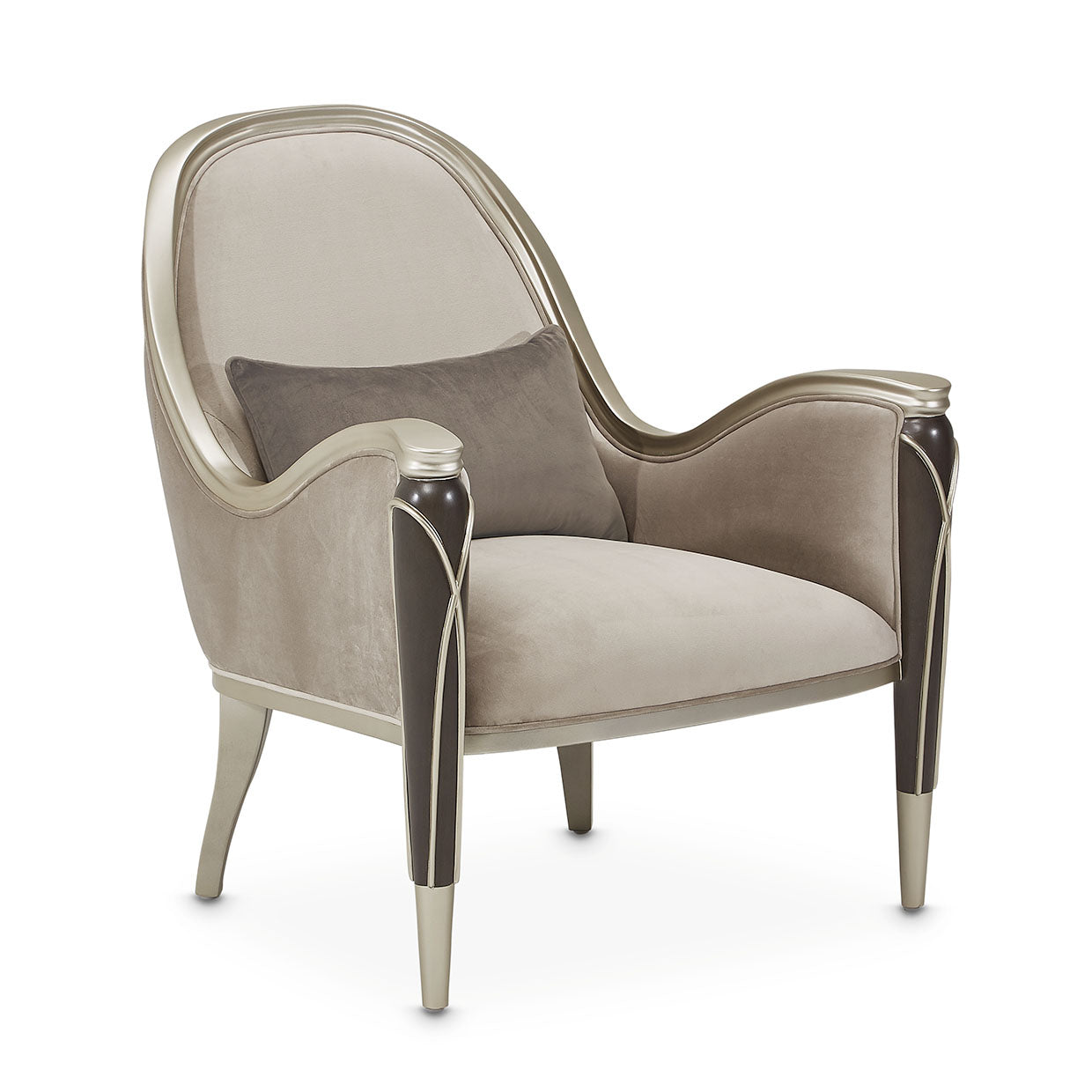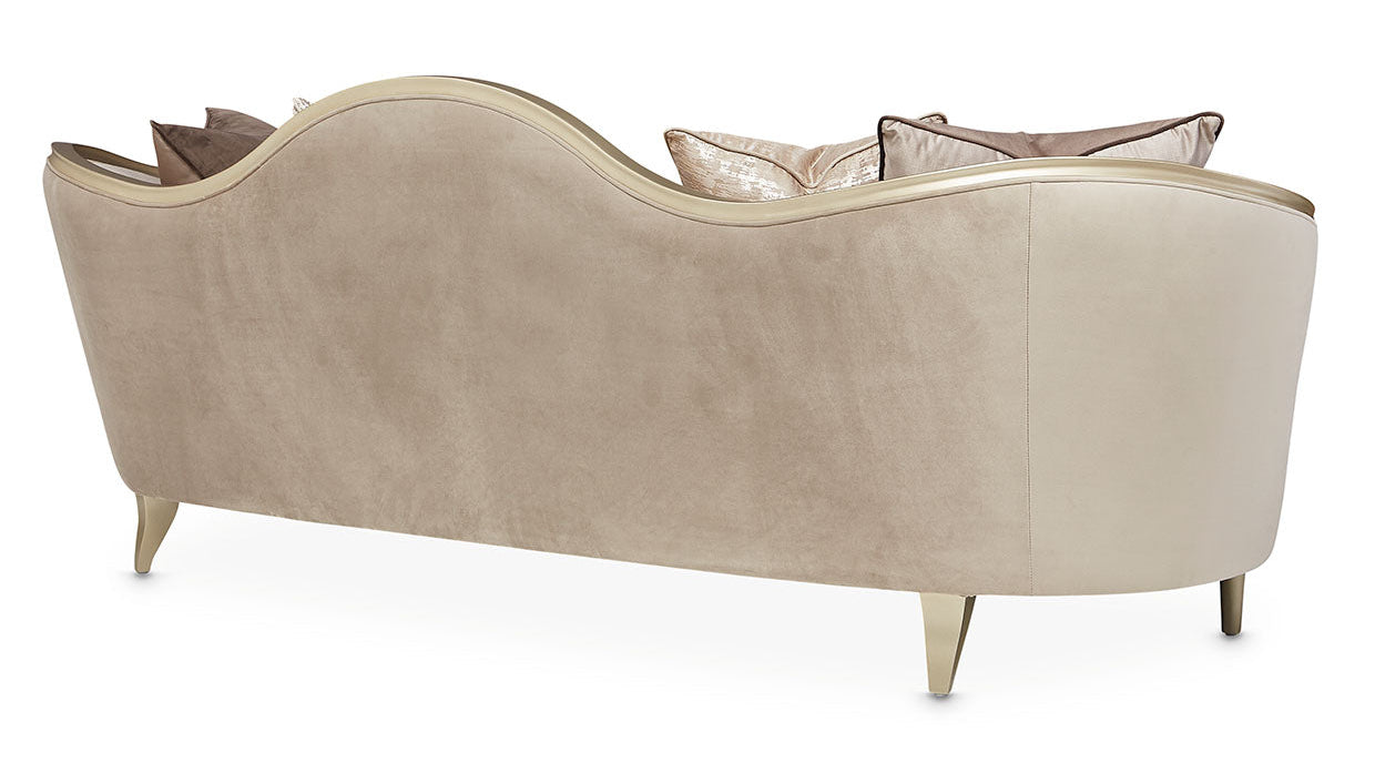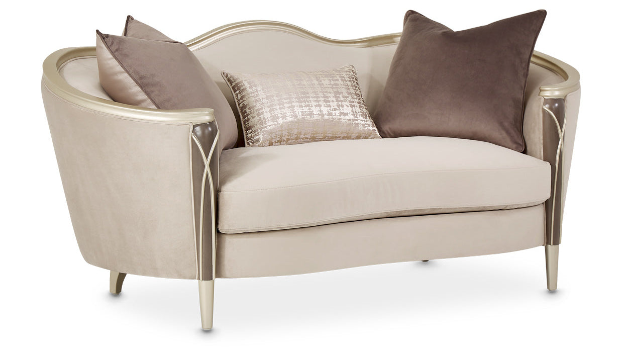 - Sofa and Matching Chair are designed with curving armrests and Porcini velvet