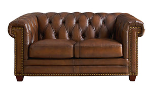 Premium Leather: Top-grain leather is upholstered on the seating areas and armrests. Split leather is used on the sides and back.