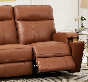 Premium Leather: Top-grain leather is upholstered on the seating areas and armrests. Leather match is used on the sides and back.