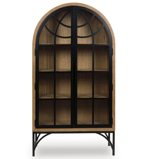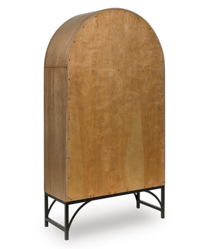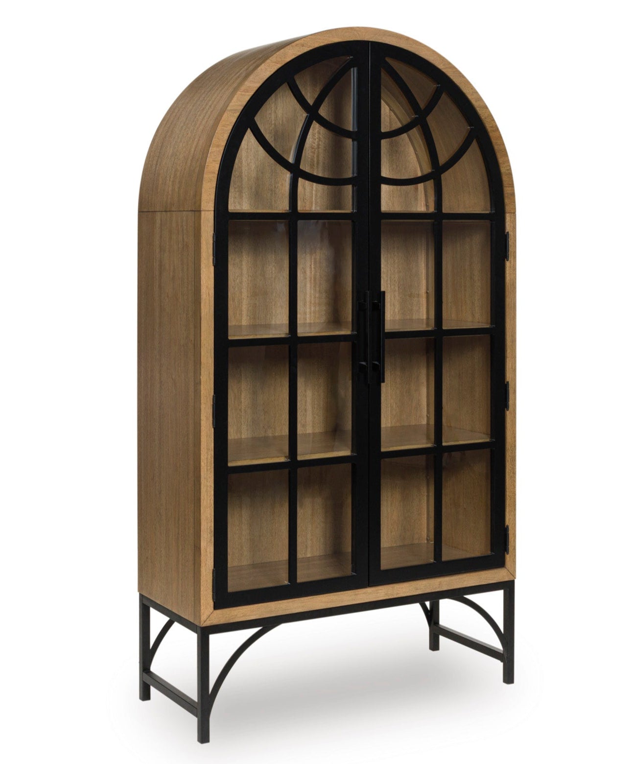 Store in style with this accent cabinet. Dressed in versatile natural brown and black finishes, it seamlessly suits spaces from casual to modern. An arched profile elevates the look and feel. Whether it's used to display your favorite dishware or as a handsome makeshift pantry in small spaces, this cabinet makes a chic impression.